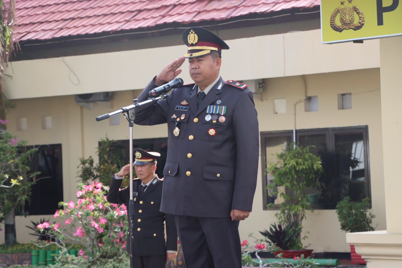 Bertindak selaku Inspektur Upacara, Waka Polres Luwu Timur Kompol Hajriadi memimpin jalannya kegiatan yang diikuti oleh para pejabat utama, personel Polres, serta Polsek jajaran. Seluruh peserta mengenakan pakaian dinas lengkap, menambah suasana tertib dan penuh khidmat.