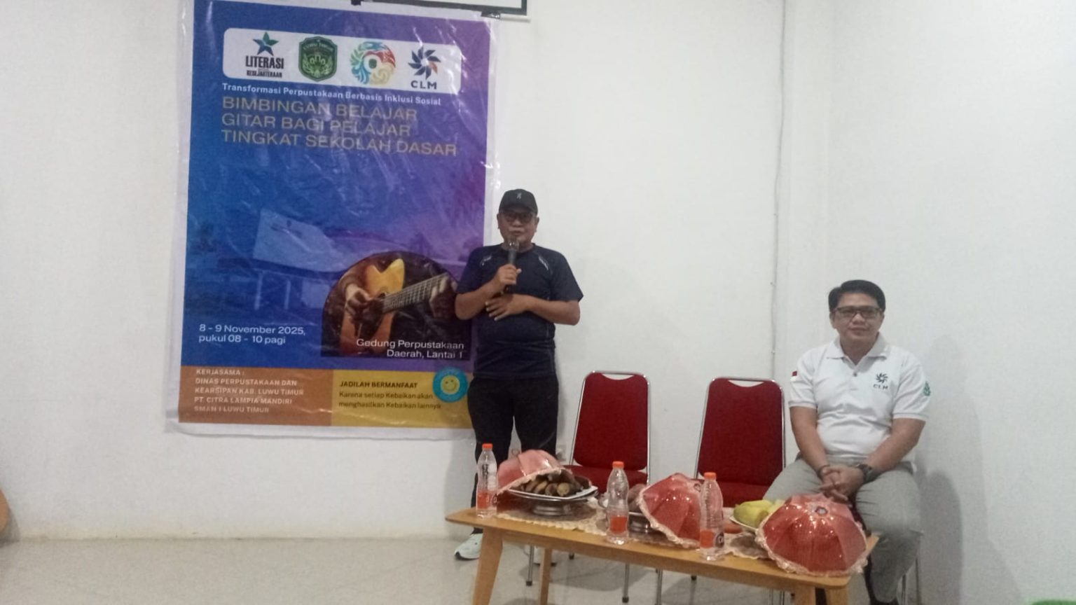 Luwu Timur — Perpustakaan kini tak lagi sekadar tumpukan buku! Mewujudkan semangat Transformasi Perpustakaan Berbasis Inklusi Sosial (TPBIS), Dinas Perpustakaan dan Kearsipan Kabupaten Luwu Timur berkolaborasi apik dengan PT Citra Lampia Mandiri (PT CLM), menyulap gedung perpustakaan menjadi ruang belajar musik yang hidup.