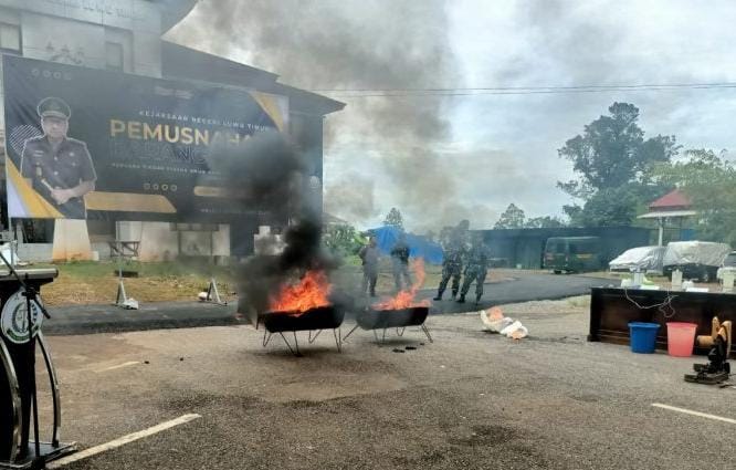 pemusnahan barang bukti ini dihadiri perwira penghubung Lutim, kepala Bea dan Cukai Malili, Asisten pembangunan, Kabag Kesra dan personil Kejaksaan negeri ,polres Luwu Timur dan sejumlah awak media.