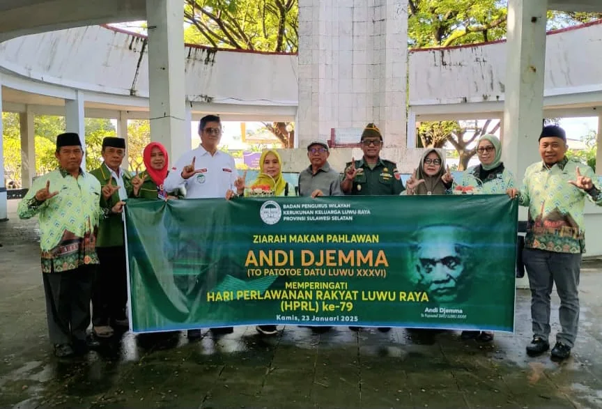 MAKASSAR – Badan Pengurus Wilayah (BPW) Kerukunan Keluarga Luwu Raya (KKLR) Provinsi Sulawesi Selatan mengenang peristiwa bersejarah 23 Januari 1946 dengan berziarah ke makam Datu Luwu ke-33 dan ke-36 Andi Djemma di Taman Makam Pahlawan (TMP) Panaikang, Makassar, Kamis (23/1/2025).