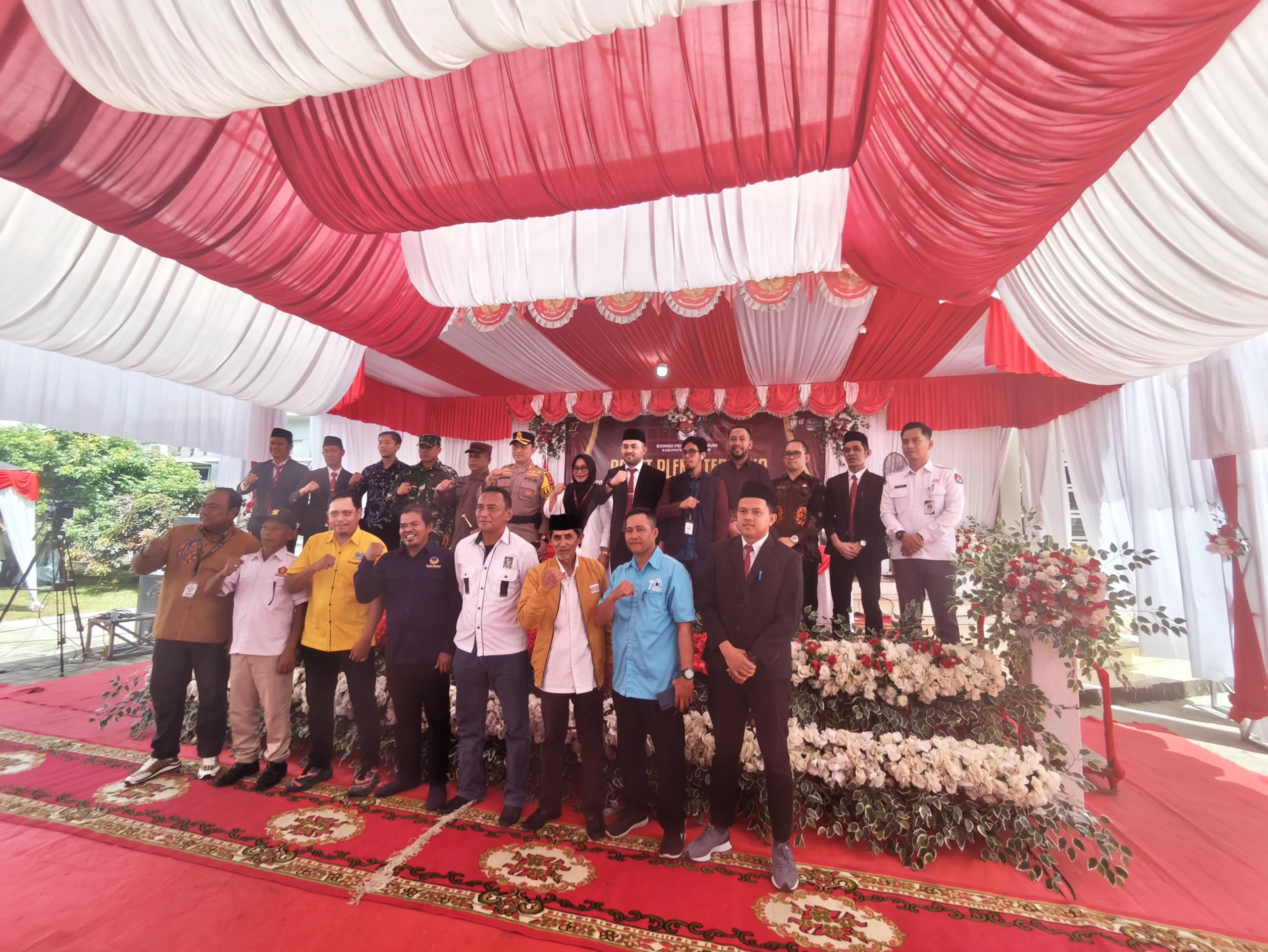 LUWU TIMUR — Komisi Pemilihan Umum (KPU) Kabupaten Luwu Timur menggelar rapat pleno terbuka penetapan pasangan calon Bupati dan Wakil Bupati terpilih hasil Pemilihan Kepala Daerah (Pilkada) serentak tahun 2024. Acara ini berlangsung di Halaman Kantor KPU Luwu Timur, Kamis (9/1/24).