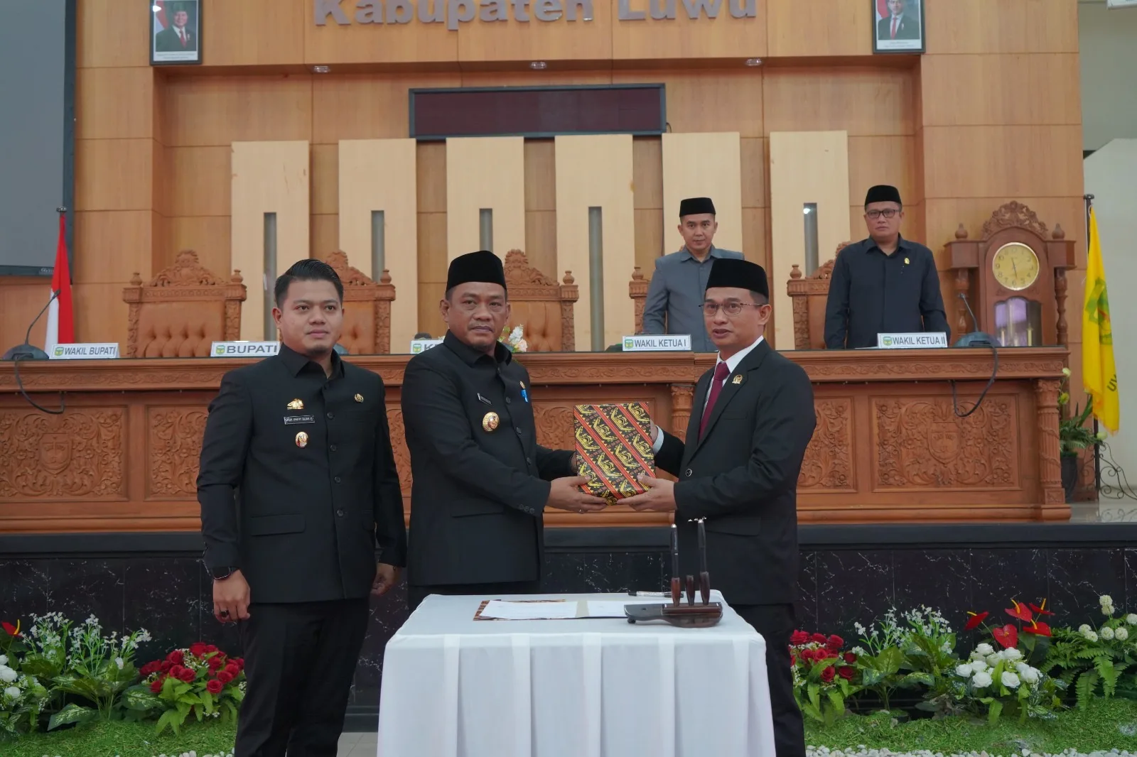 Bupati Luwu, H. Patahudding, S.Ag bersama Wakil Bupati Luwu, Muh. Dhevy Bijak Pawindu, SH menghadiri rapat paripurna DPRD Luwu dengan agenda penyampaian Laporan Keterangan Pertanggung Jawaban (LKPJ) Bupati Luwu Tahun 2024.