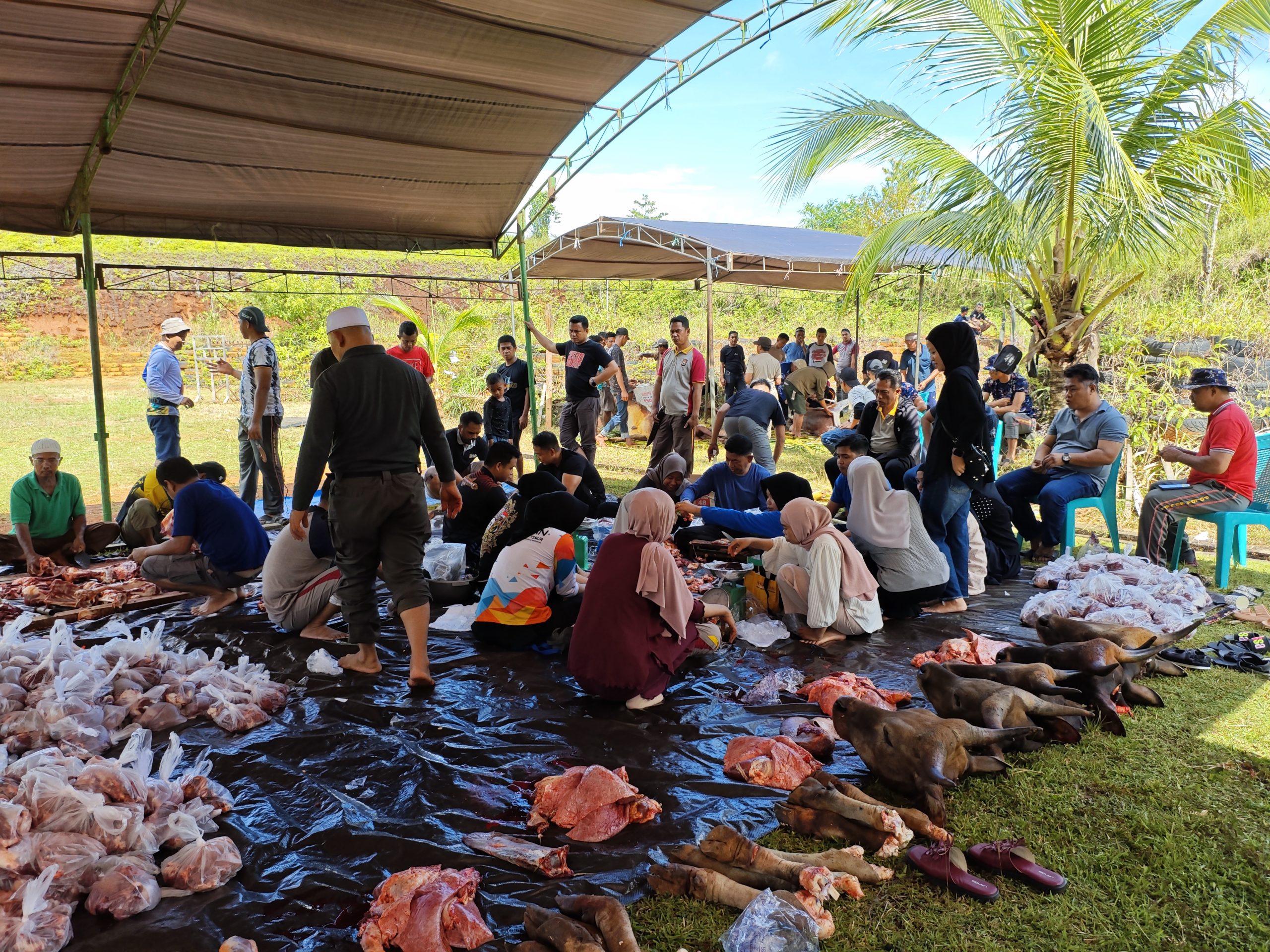 Kegiatan pemotongan dan pendistribusian daging kurban berlangsung tertib dan lancar, serta mendapat apresiasi dari masyarakat yang menerima manfaatnya.