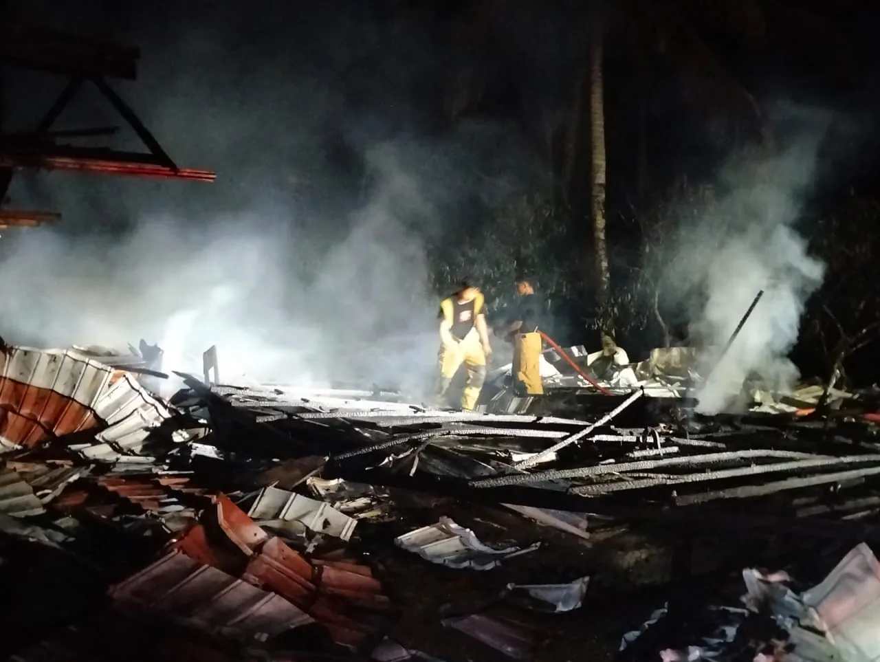 Sutejo kemudian berteriak meminta pertolongan warga sekitar sambil menghubungi tim pemadam kebakaran. Tim Damkar Tomoni tiba di lokasi pada pukul 00.10 WITA dan berhasil memadamkan api sekitar pukul 01.00 WITA.